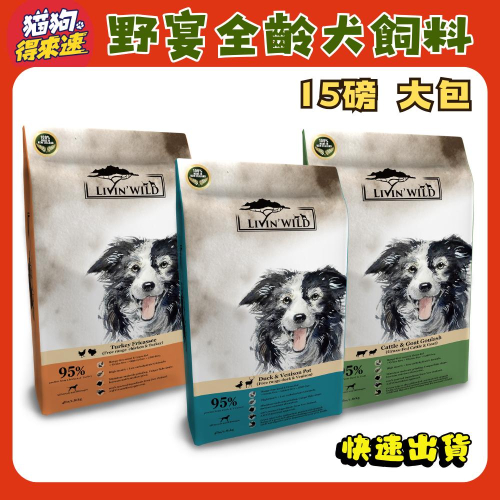 🚚貓狗得來速【Livin' Wild 野宴】 犬飼料 紐西蘭 草飼無穀 全齡犬 狗飼料 狗乾糧【大包】