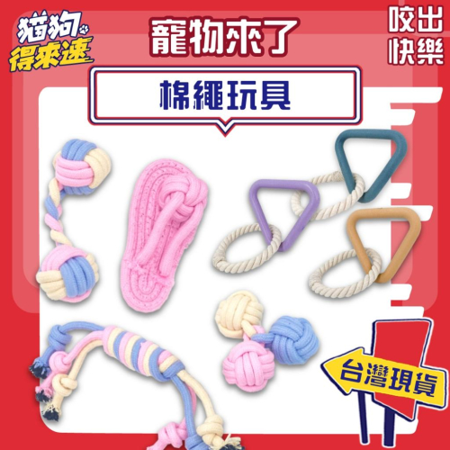 台灣現貨貓狗得來速 馬卡龍色系棉繩玩具 磨牙玩具 棉繩拉環玩具