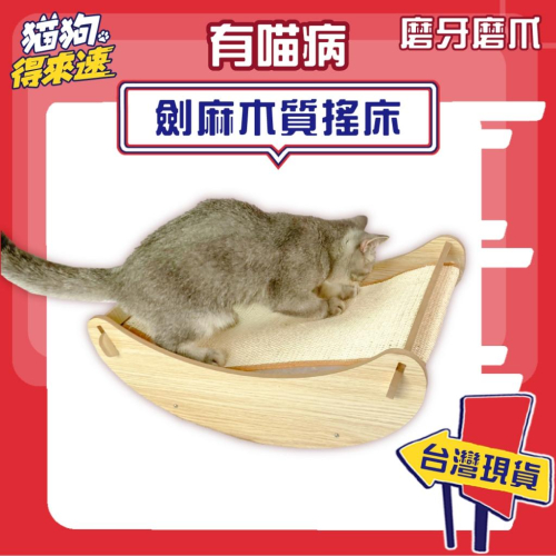 台灣現貨貓狗得來速 有喵病 劍麻木質搖床 貓窩 貓抓板 睡窩 貓咪沙發 躺椅貓抓板 貓躺椅