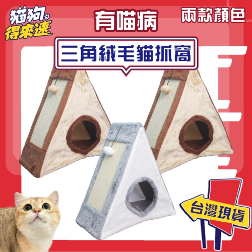 台灣現貨貓狗得來速 有喵病 三角絨毛貓抓窩 貓抓碗 貓抓盆 貓抓板 貓窩 貓屋 貓抓窩 貓用品 寵物用品