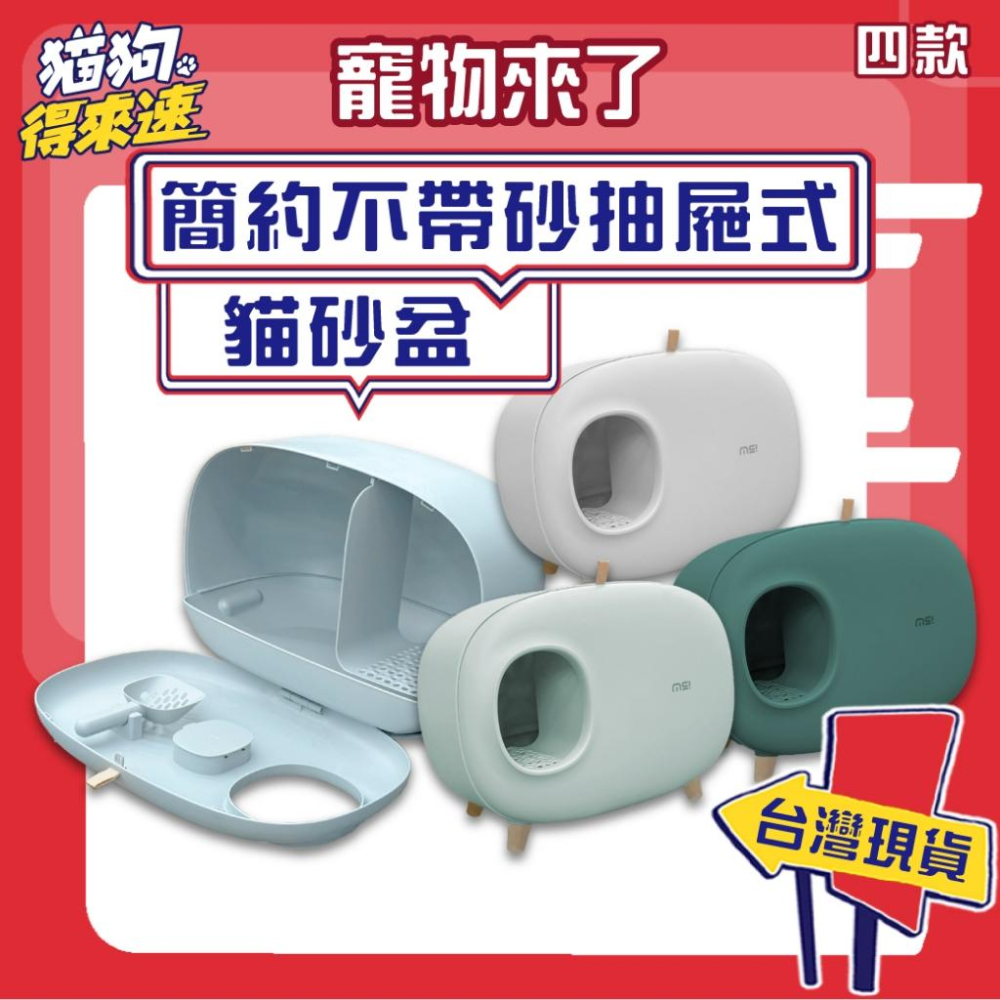 台灣現貨貓狗得來速 有喵病 簡約不帶砂抽屜式貓砂盆 貓砂盆 貓砂鏟 大空間 貓廁所