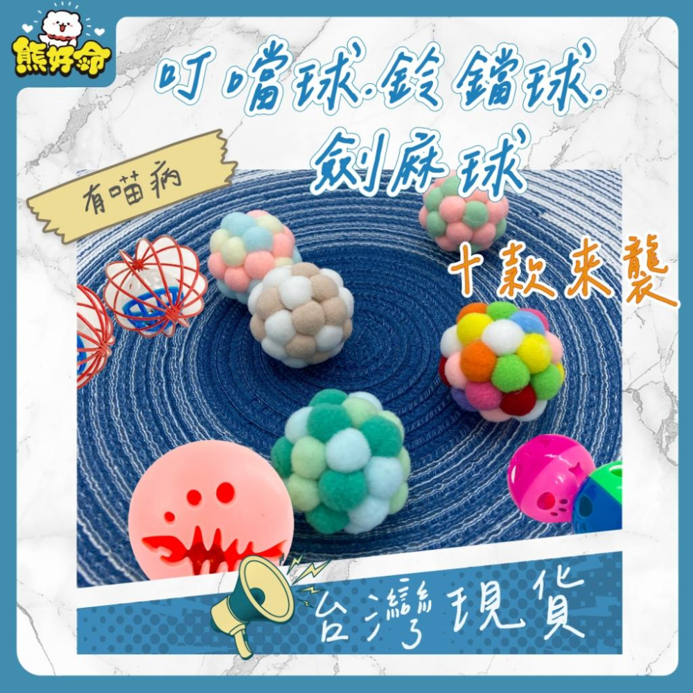 台灣現貨熊好命🧸有喵病 寵物叮噹球 貓咪鈴鐺球 貓玩具 籠中鈴鐺球 毛絨鈴鐺球 劍麻球