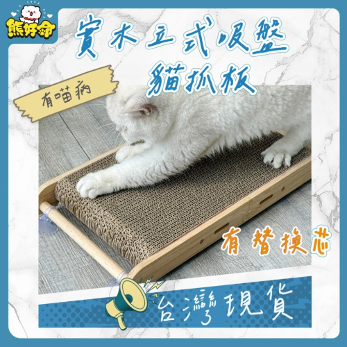 台灣現貨熊好命🧸有喵病 實木立式吸盤貓抓板 貓抓板替換芯 貓磨爪 貓抓板 貓玩具