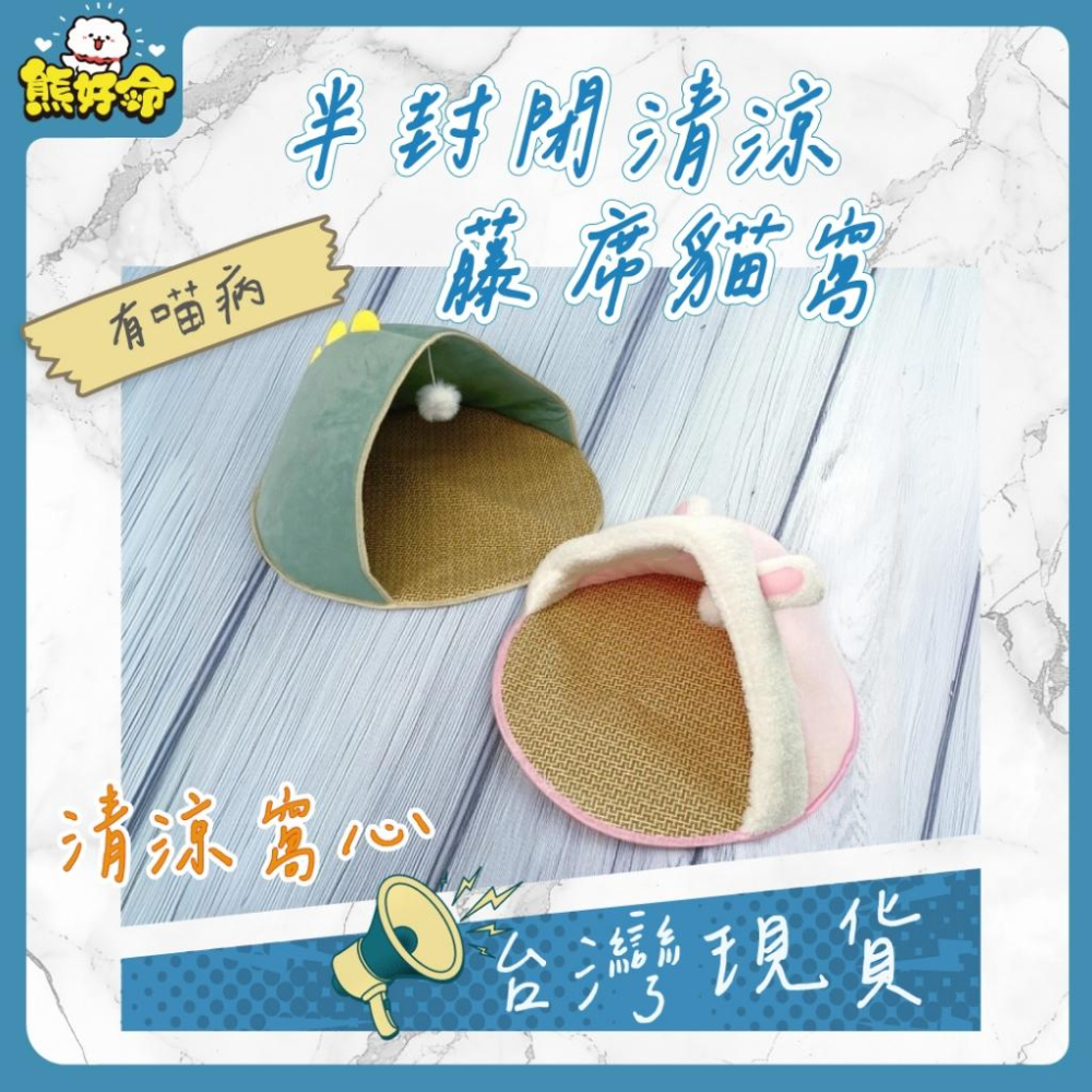 台灣現貨熊好命🧸 半封閉清涼藤席貓窩 兔子恐龍 夏季 涼墊 寵物