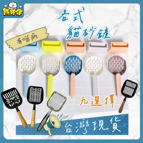 台灣現貨熊好命🧸有喵病 雙色拼接貓砂鏟套組 實木柄塗層貓砂鏟 直紋快速漏沙金屬貓砂鏟