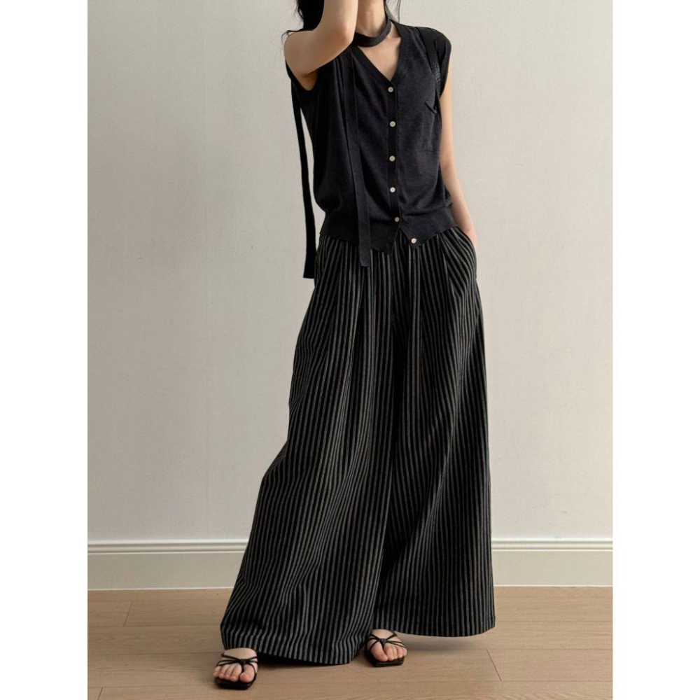 貓町選品🐯台灣現貨【Y82215】實拍春夏棉麻簡約闊腿褲