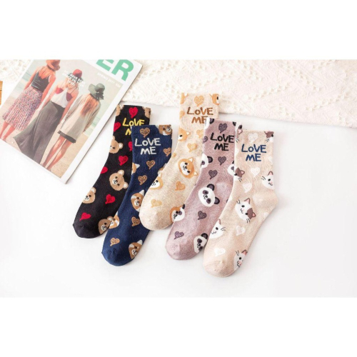 現貨 卡通 女襪 棉 中筒襪子 甜美 可愛 動物滿版 學生百搭襪子
