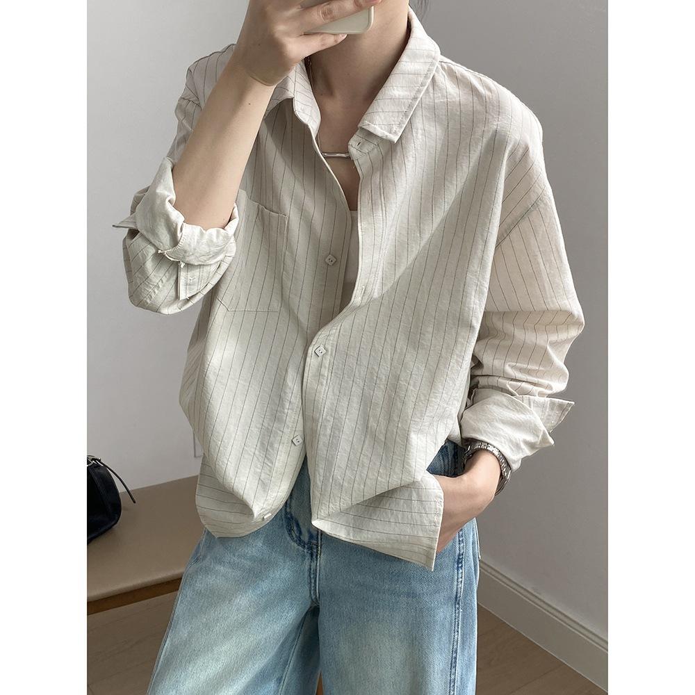 貓町選品🐯台灣現貨【Y82205】實拍韓國春夏氣質休閒條紋襯衫