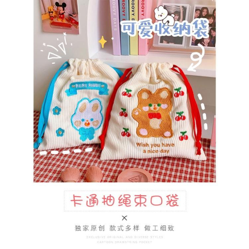 貓町選品🐯台灣現貨 束口袋 收納袋 茶茶熊 芮芮兔 整理袋 衛生棉收納袋 旅遊收納包