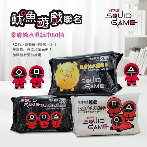 【輕鬆購精品百貨】宏瑋 魷魚遊戲聯名 柔膚純水濕紙巾 80抽