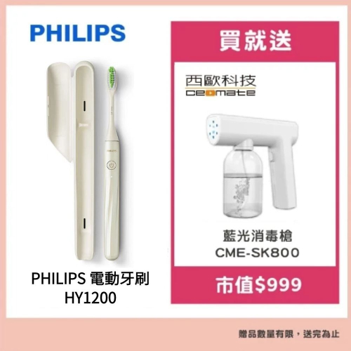 PHILIPS 飛利浦One by Sonicare攜帶式旅行盒電動牙刷 HY1200 綠/白色消毒槍-SK800
