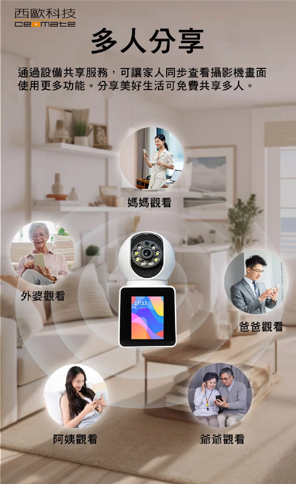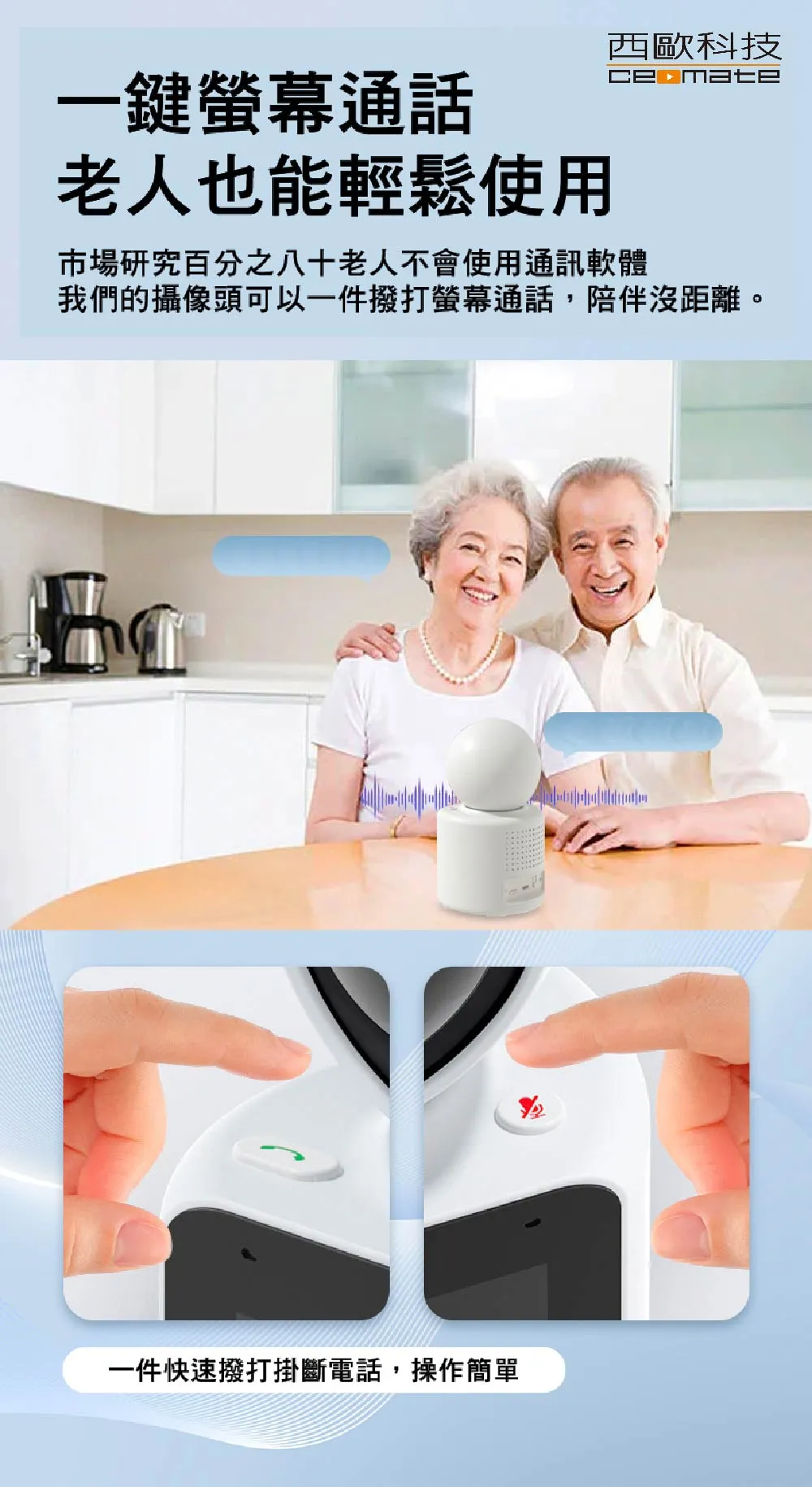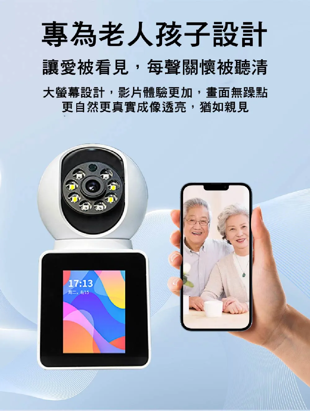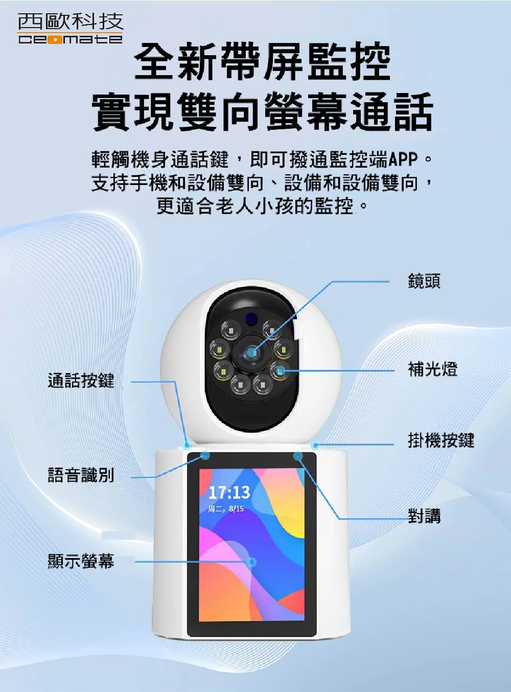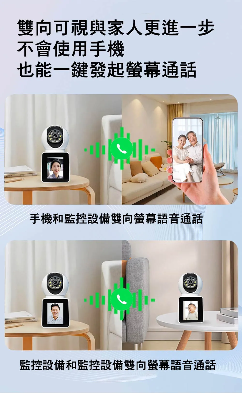 · 內建雙向語音對講與主動呼叫功能,適合長照、嬰兒監控、寵物照看