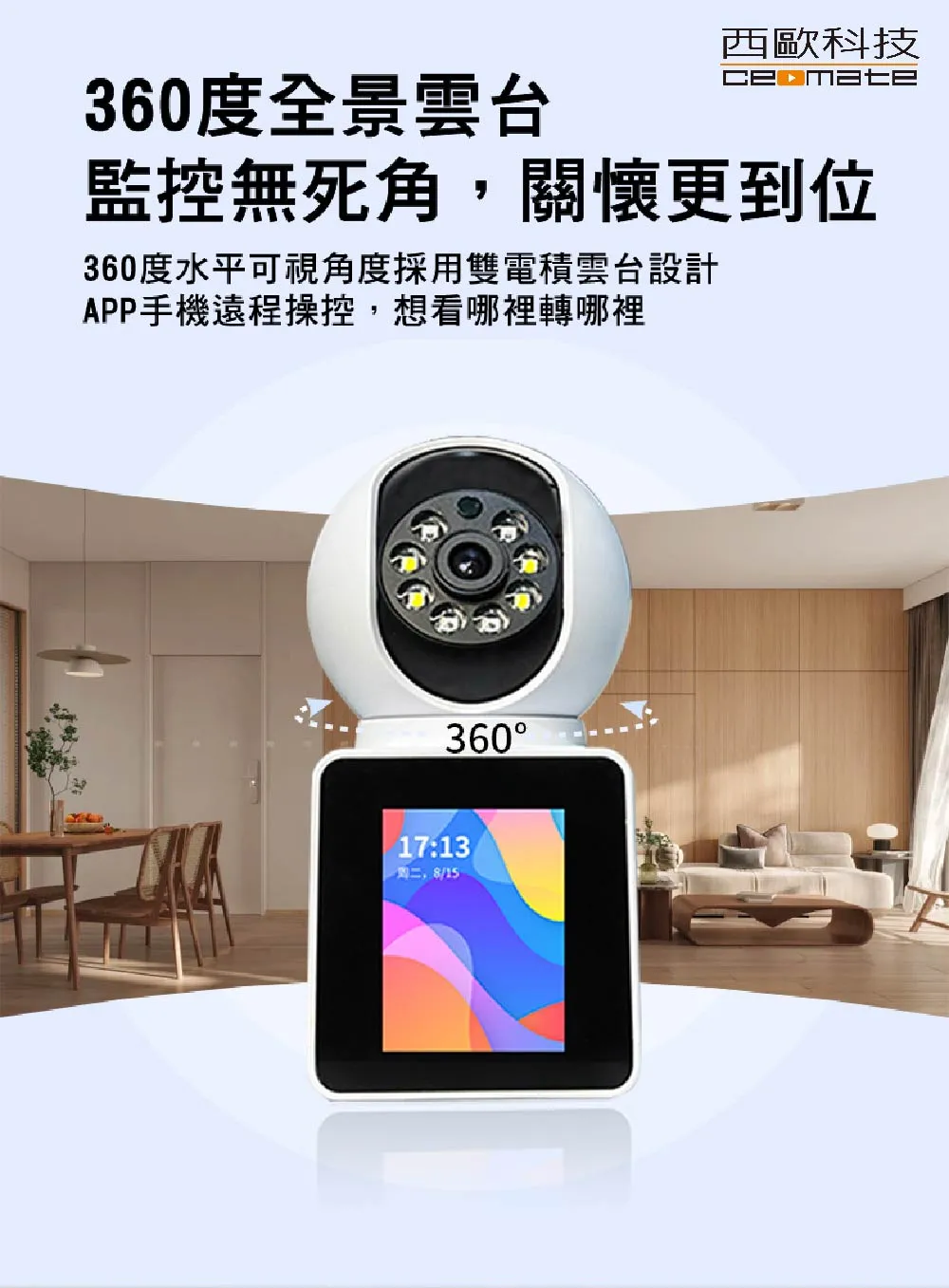 · 水平355度/垂直120度旋轉角度,視野廣闊無死角