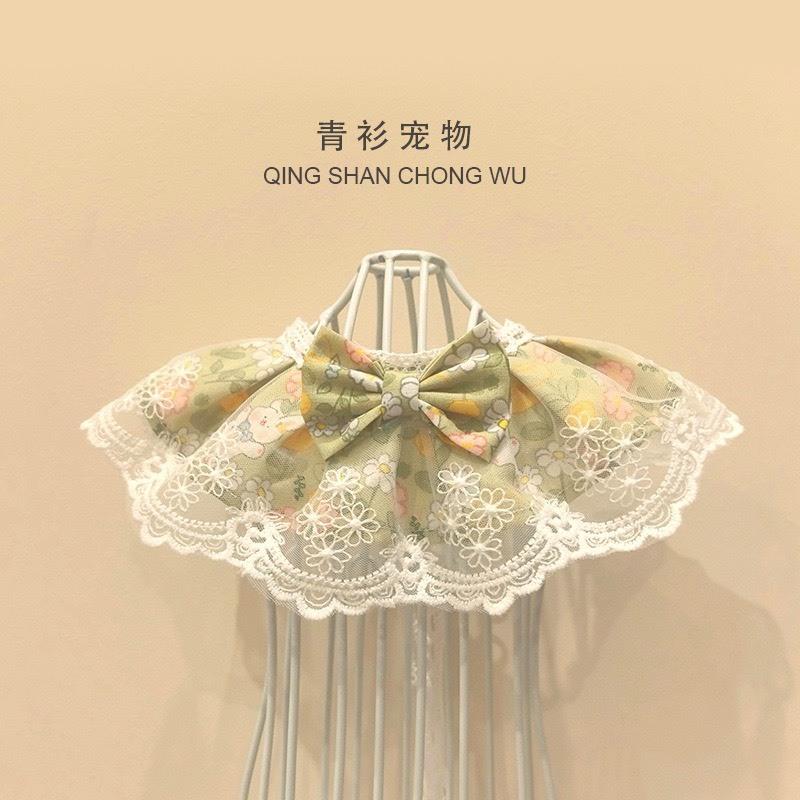 #現貨快速出貨【青衫寵物】原創 ◆ 小兔子綠色花邊蕾絲口水巾、領巾寵物貓咪狗狗頸部裝飾衣服圍脖