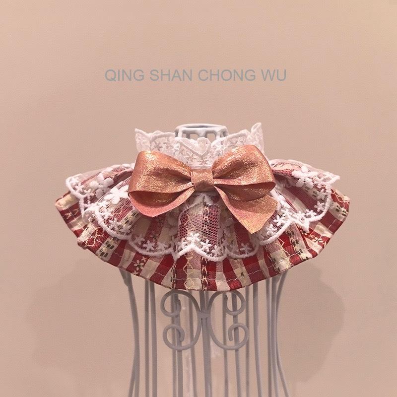 #現貨快速出貨【青衫寵物】原創 ◆ 紅色蝴蝶結格紋花邊蕾絲口水巾、領巾寵物貓咪狗狗頸部裝飾衣服圍脖