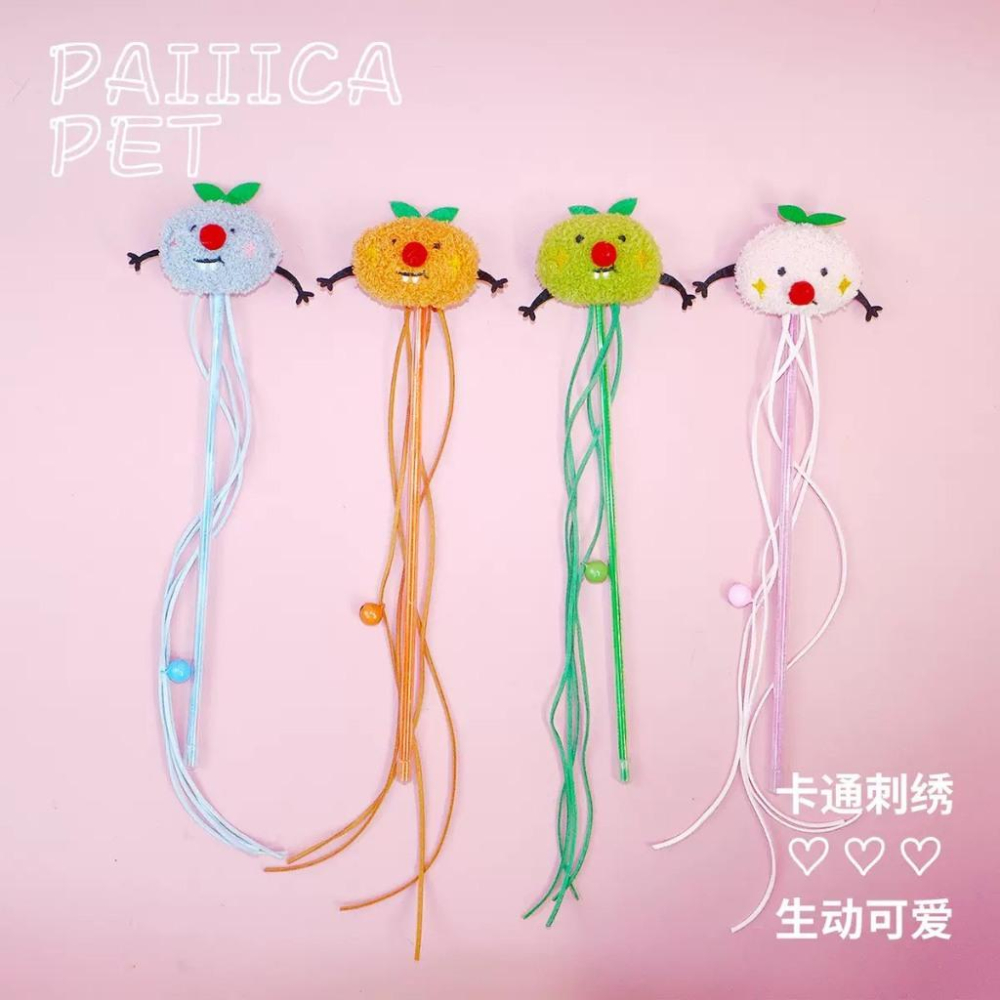 現貨 可愛逗貓棒寵物玩具貓咪玩具多色小橘子系列搭配小鈴鐺逗猫棒自嗨解悶貓咪玩具