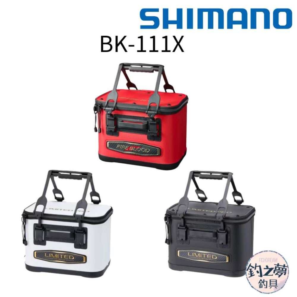 #SHIMANO BK-111X 誘餌桶 尺寸: 36公分 (24×36×26) 40公分(26×40×28) 耐久性提升的餌箱旗艦型號。 強化了在磯場易磨損的邊緣部分,搭載了可以一鍵合體和解除的「Gatchit」手柄,以及在磯場上不易滑動的立體橡膠底足, 專注於在磯場使用的便利性。 【 歡迎來到釣之夢釣具 】   我們的商品保證『公司貨、新品』 買的安心👍有保障👍 優質商品不定時上架~ 商品流動大,如遇缺貨,請多多見諒 有任何商品問題歡迎聊聊,找不到的商品也可以聊聊詢問 若商品收到後有瑕疵,都可以辦理退貨!(請勿使用評價來溝通) ❗️請注意❗️ 🔺超商限重5kg,超過請分開下單或選擇宅配 寄件尺寸一邊不能超過45cm,長寬高總和不能超過105cm 🔺宅配限重20kg 寄件尺寸一邊不能超過150cm 優良的商品 合理的價格 完善的售後服務 #宅配到家 #超商取貨 #超商 ⭕ #711超商取貨付款 ## 🔥
