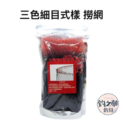 三色細目式樣 撈網 📍材質 : 膠絲 📍顏色 : 黑紅  📍規格: ❶直徑:45cm/網深約:55cm ❷直徑:50cm/網深約:60cm 📍耐磨損、切水性更強、抗氧化 ⚠️圖片上是是使用第一精工的快拆網框(50cm)⚠️ ⚠️本產品手工編織,會有誤差存在⚠️ ⚠️本產品不含網框⚠️ 【 歡迎來到釣之夢釣具 】 我們的商品保證『公司貨、新品』 買的安心👍有保障👍 優質商品不定時上架~ 商品流動大,如遇缺貨,請多多見諒 有任何商品問題歡迎聊聊,找不到的商品也可以聊聊詢問 若商品收到後有瑕疵,都可以辦理退貨!(請勿使用評價來溝通) ❗️請注意❗️ 🔺超商限重5kg,超過請分開下單或選擇宅配 寄件尺寸一邊不能超過45cm,長寬高總和不能超過105cm 🔺宅配限重20kg 寄件尺寸一邊不能超過150cm 優良的商品 合理的價格 完善的售後服務 #宅配到家 #超商取貨 #超商 ⭕️ #711超商取貨付款# 🔥