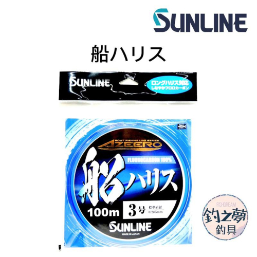 釣之夢~SUNLINE 子線 BASIC AZEERO 船ハリス 碳纖線 100M 卡夢線 船釣線 釣魚線 大物線 釣魚