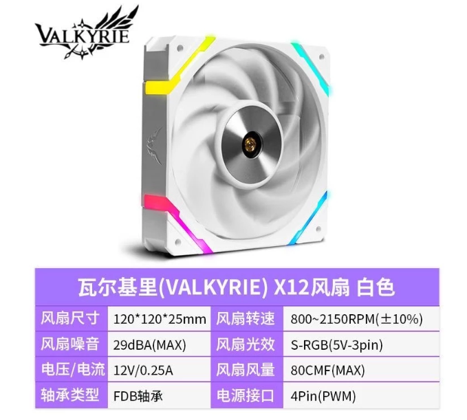 型號:Valkyrie瓦爾基里ARGB/ X12-W / 12cm (白色)