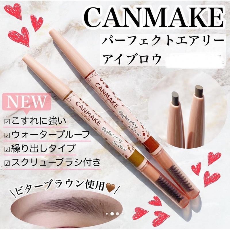 Canmake的完美空氣眉筆是一款可伸縮的眉筆,具有橢圓形筆尖,能畫出自然的眉形,不論是細緻線條或是厚實效果皆可輕鬆實現。防水配方讓眉妝持久不暈染,適合全天使用。產品輕便易攜,方便隨時隨地補妝。共有多種顏色可供選擇,滿足不同髮色和膚色需求。