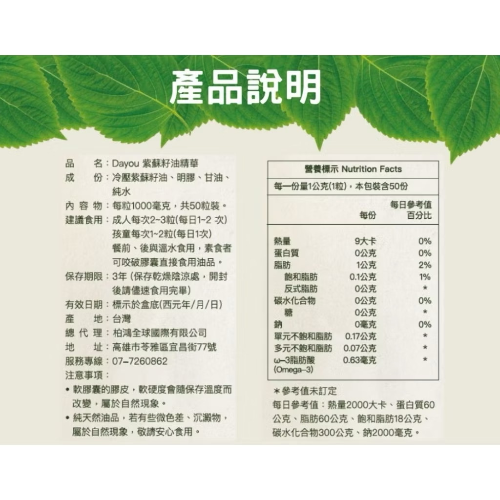 品 | 名:Dayou 紫蘇籽油精華 |