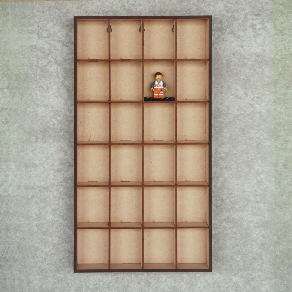 針對樂高人偶/扭蛋收藏設計的木製展示架,可放置24個樂高人偶,每格可以放置一個6x4底板來配合樂高人偶