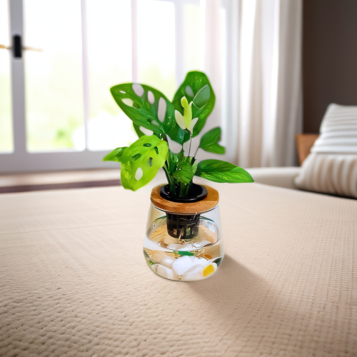 根部自然展露於水中,搭配裝飾石頭與透明瓶身,簡約中帶著自然風格。無論是放在辦公桌、書房、玄關,或作為療癒系小禮,都讓人心情放鬆。