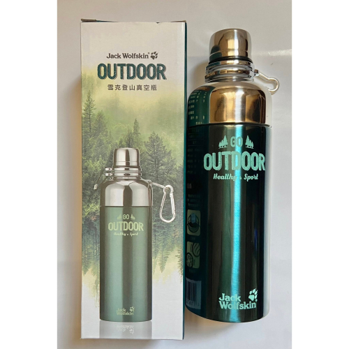 Jack Wolfskin「OUTDOOR 雪克登山真空瓶」以山系自然風格打造,適合登山、健行與日常攜帶。瓶身霧面綠色質感沉穩,結合真空斷熱結構,能有效保溫保冷,搭配不鏽鋼瓶蓋與登山扣掛鉤設計,方便吊掛於背包或腰帶上,兼具實用性與戶外風格。