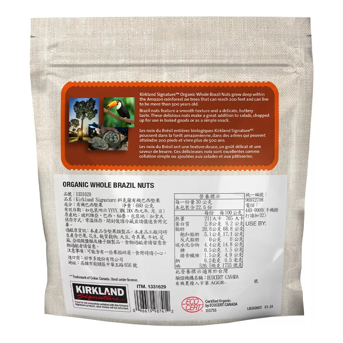 | 品名 | Kirkland Signature 科克蘭 有機巴西堅果 680公克 |