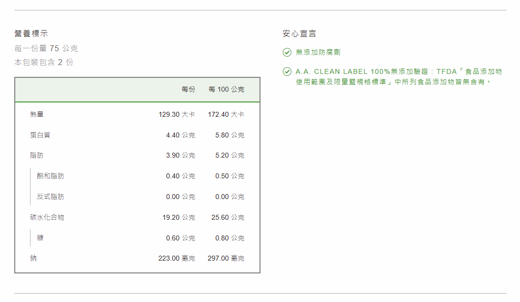 內容物名稱:青江菜、麵粉、水、洋菇、葵花油、黑木耳、胡蘿蔔、生松子、糖、碘鹽、香油(芝麻)、黑胡椒粉。