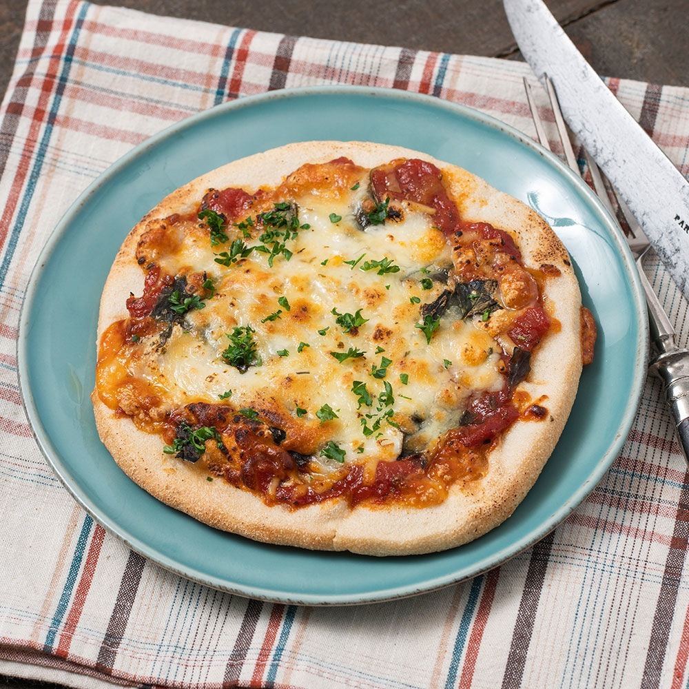 披薩皮以義大利caputo麵粉製成,增加口感軟Q及麥香氣味,搭配莫札瑞拉起司,特製番茄醬、九層塔、乾酪絲,完美呈現經典美味。