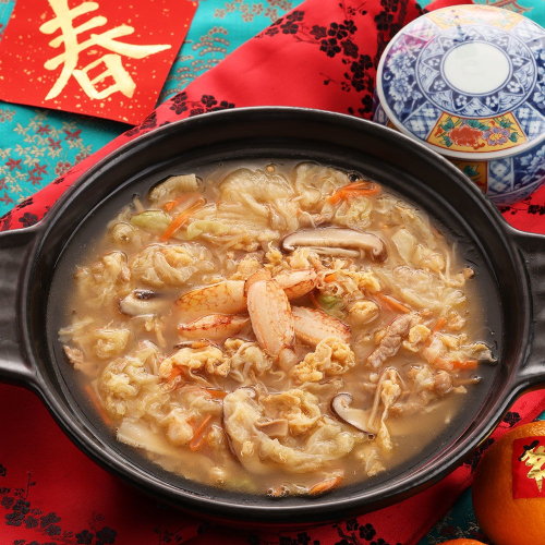 內容物名稱:柴魚湯(水、鯖魚、鰹魚)、白菜、鴨蛋、台灣豬肉絲、蟹腳肉、紅蘿蔔、金針菇、烏醋、香菇、扁魚、醬油、鹽、蝦乾、蒜仁、馬鈴薯澱粉、砂糖、香油(芝麻)、白胡椒粉。