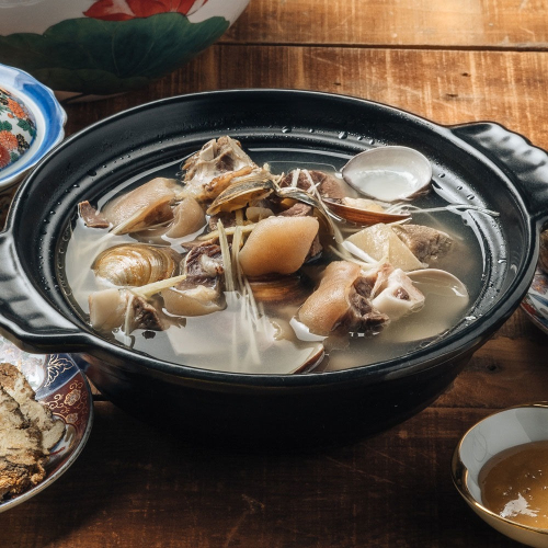澳洲特選帶皮山羊肉,皮Q肉嫩肉質纖維細緻,清燉的羊肉湯底,選用新鮮高麗菜、白蘿蔔、洋蔥細火慢燉,另外加入了海水生態養殖的文蛤,讓湯頭展現更多層次的鮮甜美味。