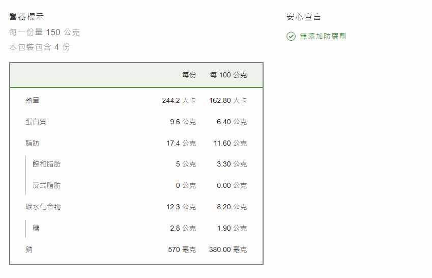 內容物名稱:台灣黑豬肉、鴨蛋、葵花油、紅蘿蔔、台灣豬脂、洋蔥、蟹腳肉、荸薺、青蔥、糯米、薑、馬鈴薯澱粉、紹興酒、殺菌全蛋液、蒜頭、醬油、冰糖、鹽、香油(芝麻)、糖、白胡椒粉。