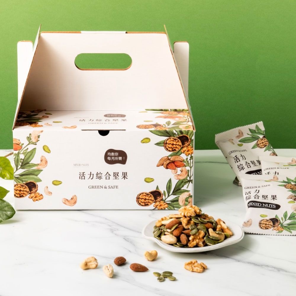 堅果除了好吃更是保健良品。GREEN&SAFE 精選「四大堅果」,100% 無添加無調味, 僅以低溫烘烤而成;貼心的小包裝設計更方便攜帶。