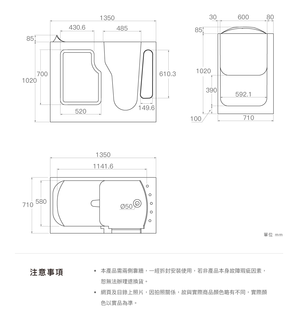 規格 : 分左開門 /右開門 ( 需兩側靠牆 )