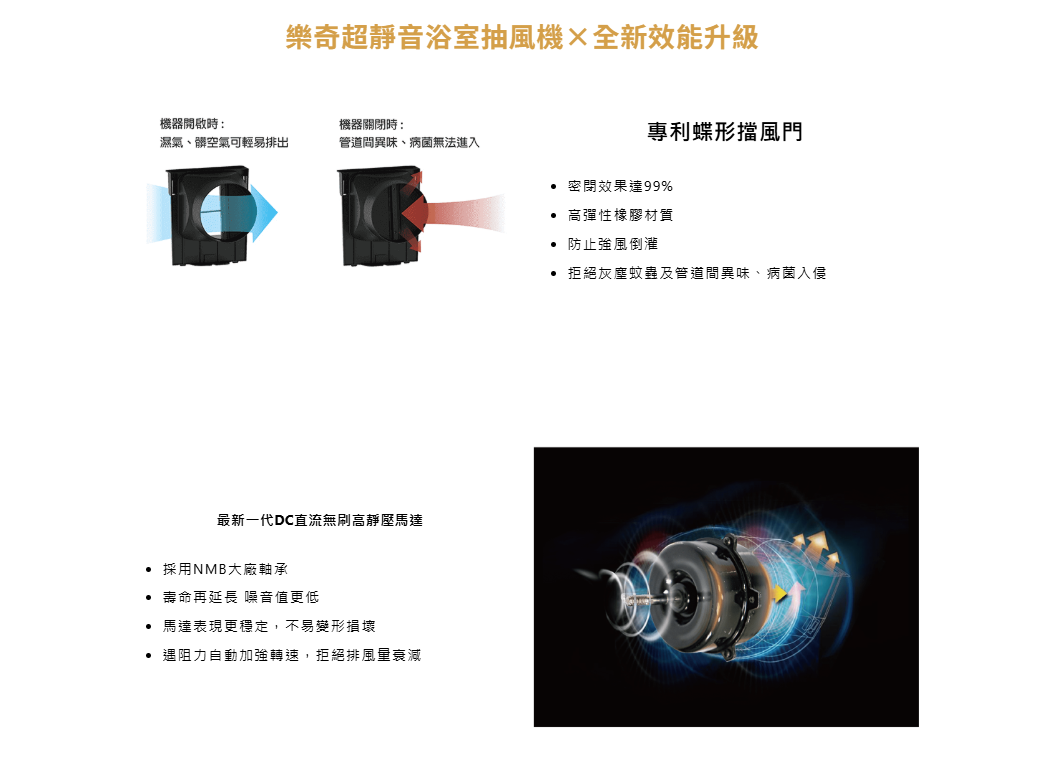 🔸專利橡膠蝴蝶翼擋風門設計 最安靜