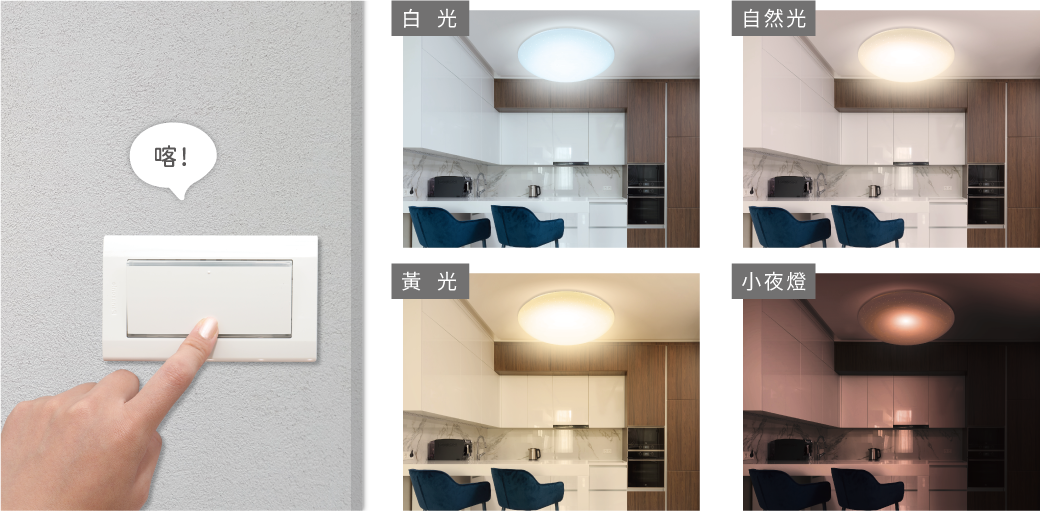 🔸四段壁切調色:白光→黃光→自然光→小夜燈