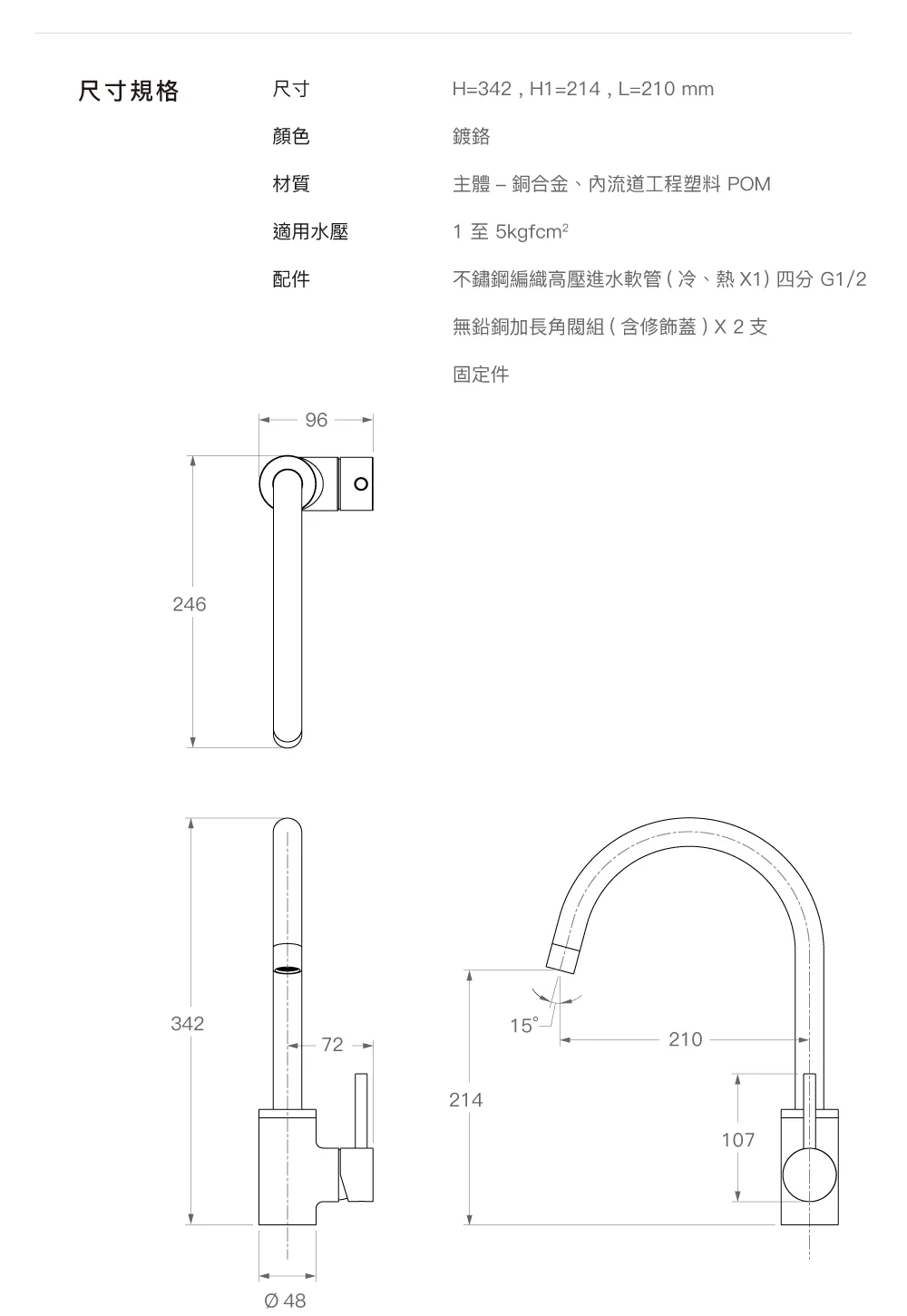 尺寸 : H=342 , H1=214 , L=210 mm