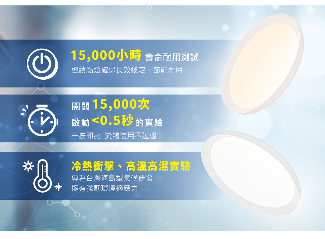 材質 : 烤漆鐵底盤、PMMA擴散罩、PC邊框、PC防觸電罩