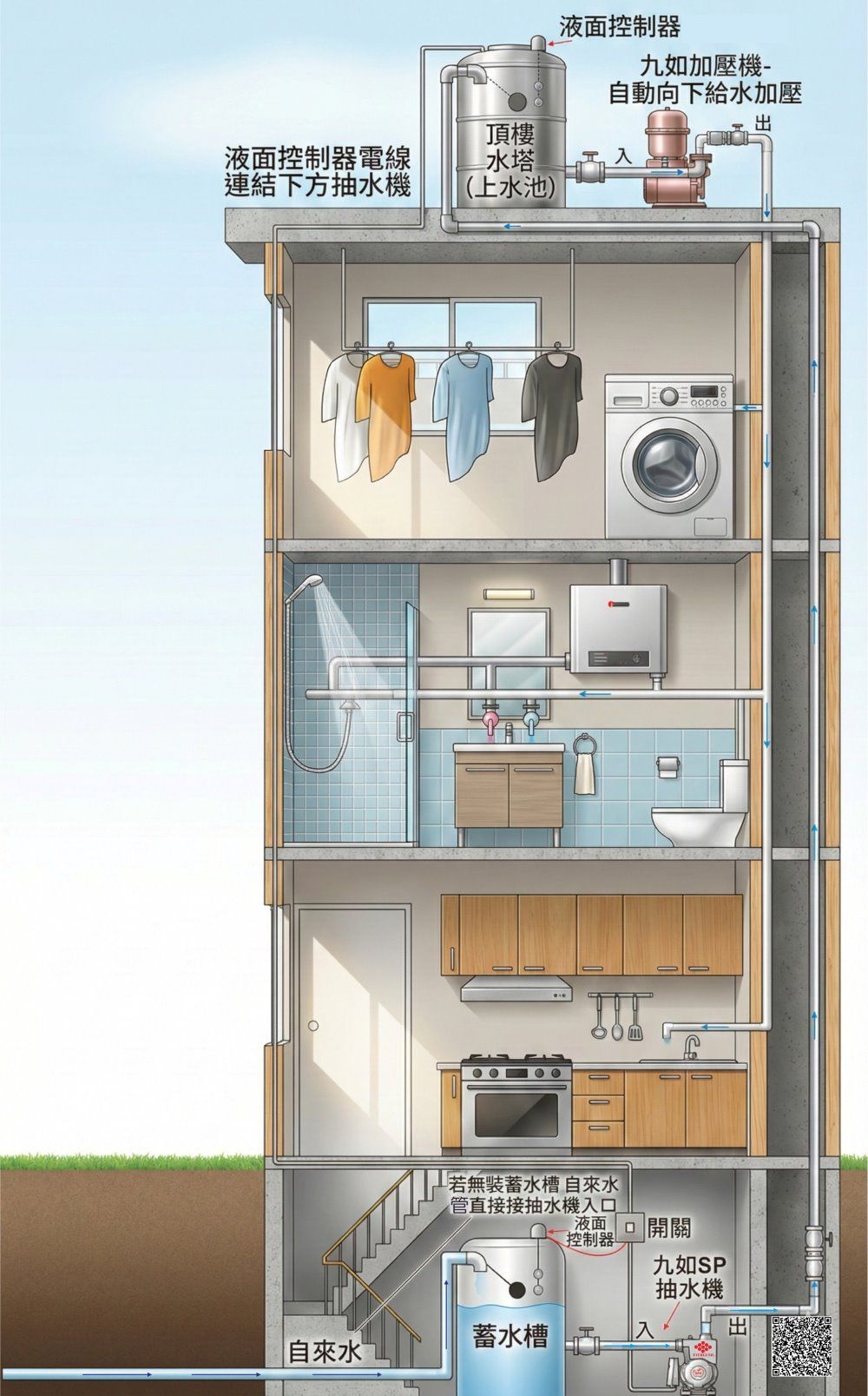 🔸可選用不銹鋼材質的 SP500ASH 抽水泵,適用於乾淨水源,不會產生鐵鏽,確保水質潔淨。