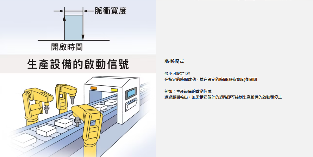 輸出模式 : 計時器模式/間隔計時器模式/脈衝模式*⁷