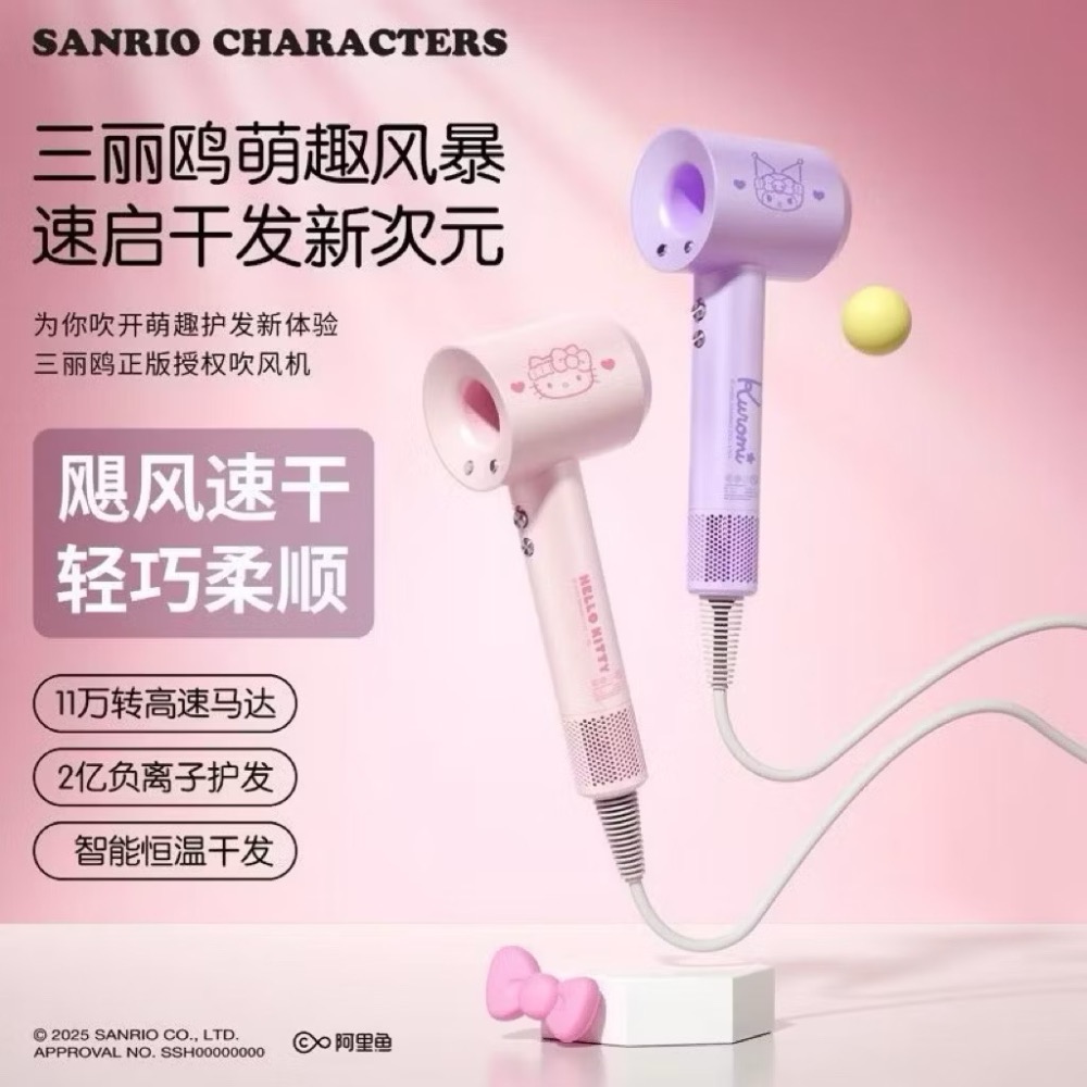 Sanrio 三麗鷗 Hello Kitty & 庫洛米 系列吹風機 11萬轉高速馬達 2億負離子護髮 智能恆溫乾髮