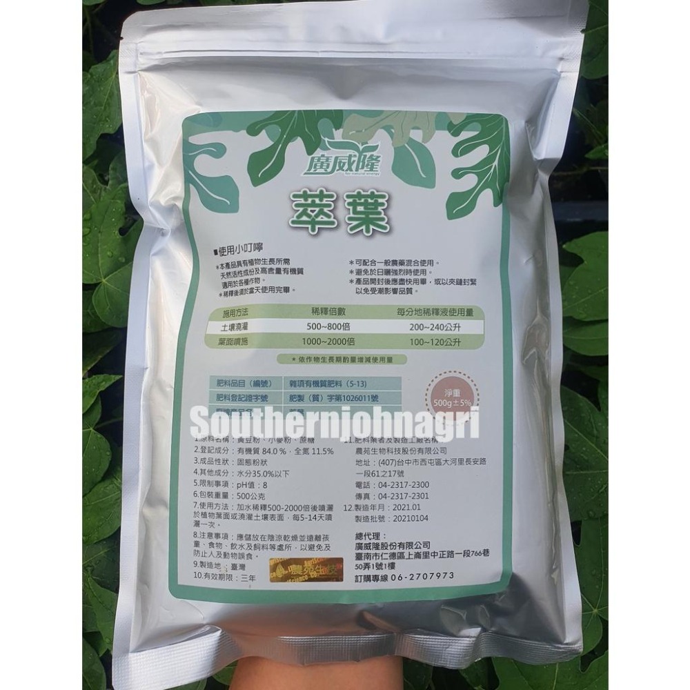 前陣子綠馨1號這支葉肥產品在市場上造成不小的迴響,因為其內含的左旋胺基酸可以幫助植物快速生長及開花著果,效果不錯。不過廣威隆最近又推出了這支—萃葉!價格更低廉,而且不僅可取代綠馨1號,甚至內含的游離胺基酸濃度比綠馨1號還高~效果更好~