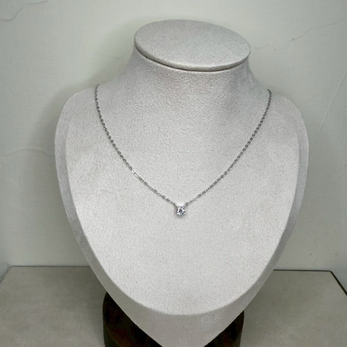 S925純銀4mm單鑽項鍊_鍍白金