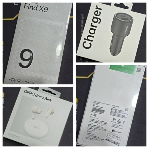 配件 : OPPO Find X9原廠盒裝全新未拆封、OPPO Enco Air4真無線降噪耳機全新未拆封(棉花白)、OPPO SUPERVOOC 80W超級閃充車載充電器全新未拆封