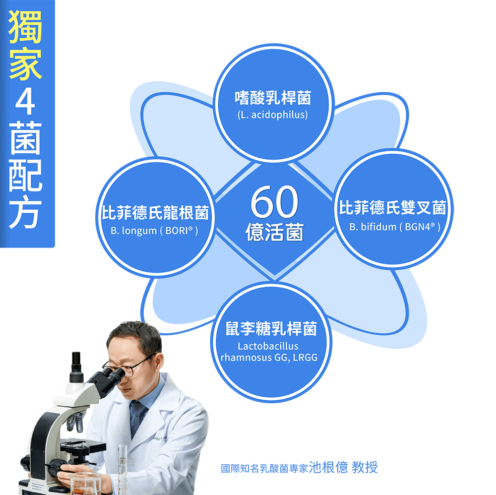 - 專利比菲德氏雙叉菌(Bifidobacterium Bifidum BGN4®)