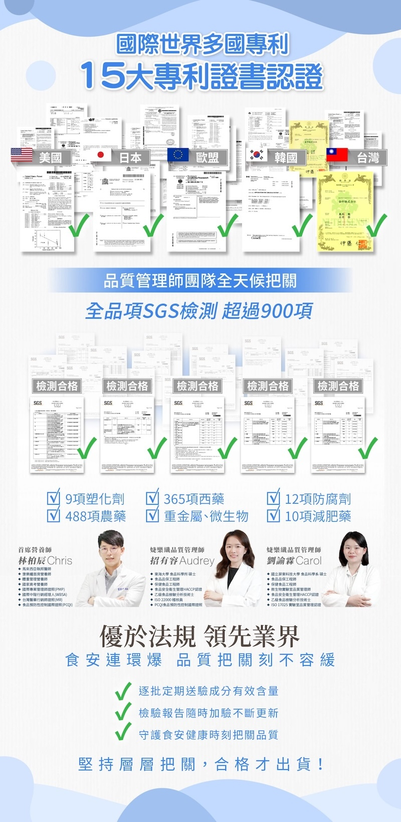專利|L137後生元足量添加、15大專利證書、SGS檢驗合格