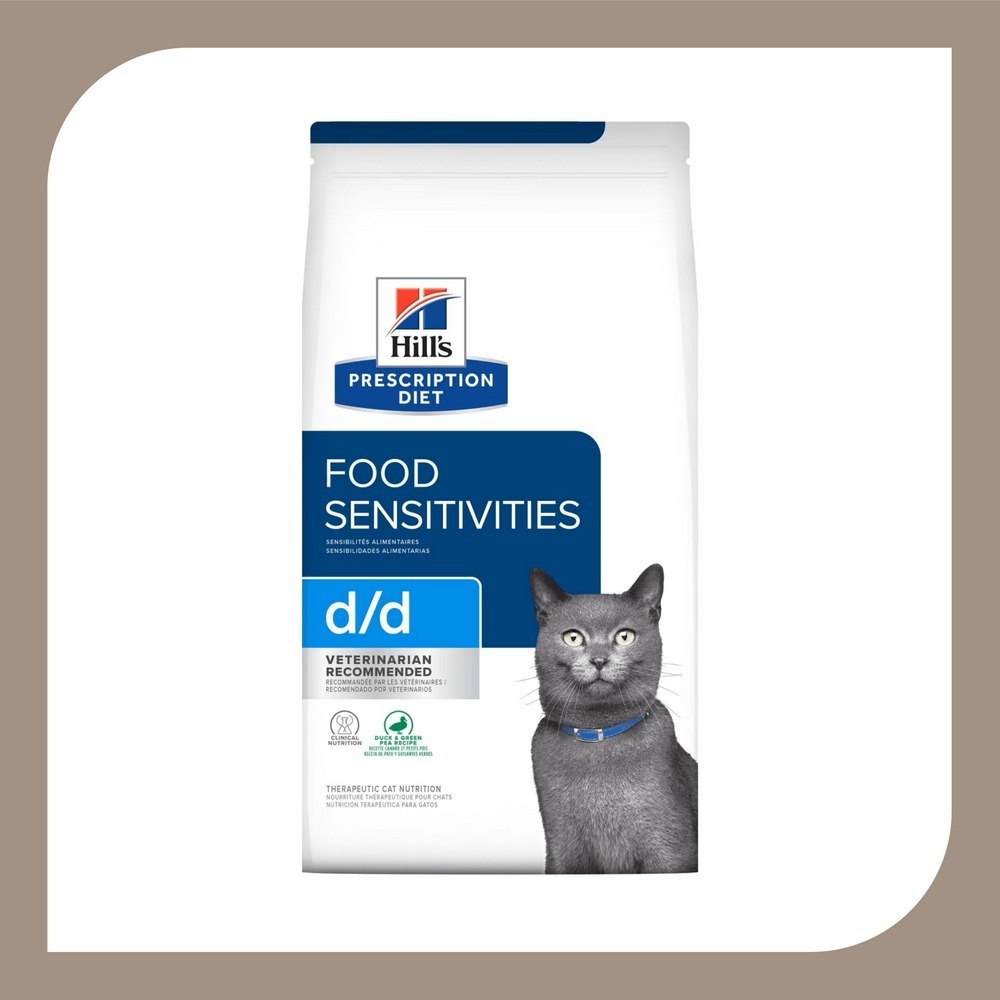 處方食品 貓用 d/d 以幫助管理食物敏感的狀況發生。